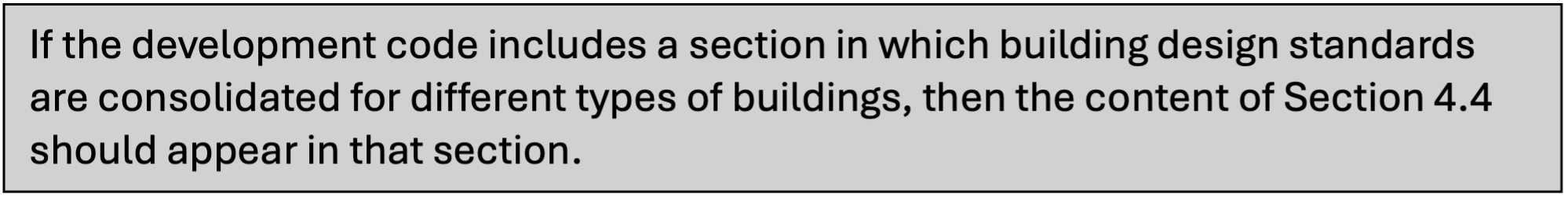 4.5.1.1. [OPTION] If [Community] has not adopted any version of the International Residential Code, the minimum size of each Starter Home shall be that required by the applicable building code applied by the Office of the Colorado State Architect for manufactured, modular, or tiny homes. If no such building code is applicable to the proposed type of Starter Home structure, then the minimum size of each Starter Home shall be that adopted by the nearest Colorado county or municipal government that has adopted a residential building code with a minimum size requirement for a detached single-unit dwelling.