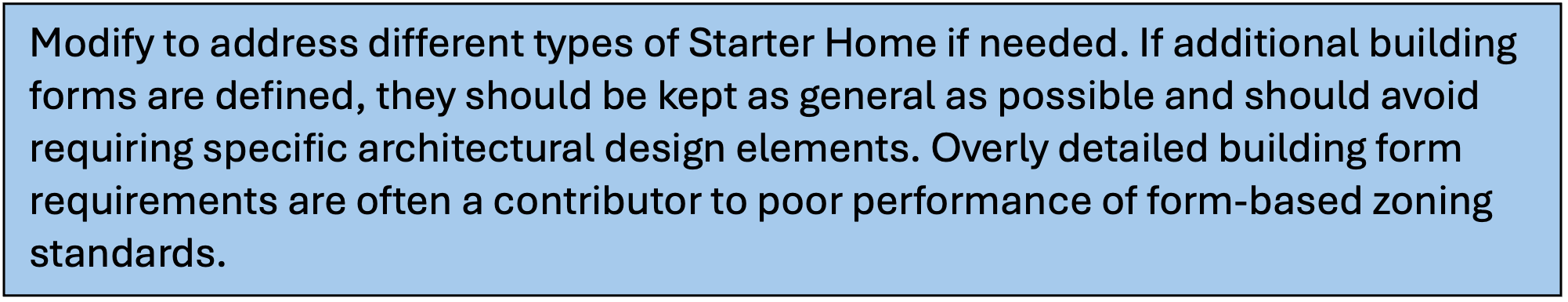 Each single-family detached dwelling shall comply with the Starter Home building form shown below.