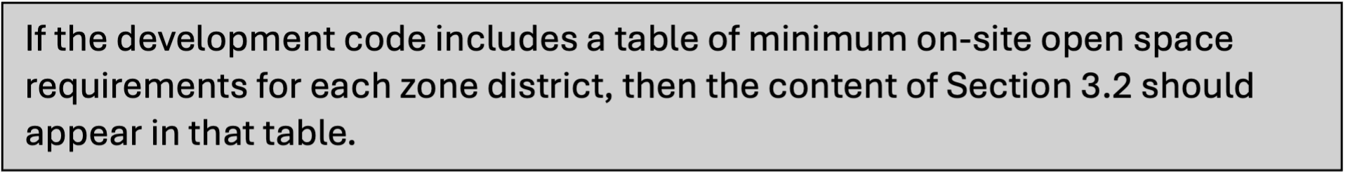 3.2.1. [OPTION] Up to [5] Starter Homes may be located on a single platted residential development lot, provided that a separate Starter Home Development Site is identified for each home in an administrative document acceptable to [Community], and each Starter Home Development Site is adequate to meet the minimum size requirements of Section 3.1, the minimum on-site open space requirements of Section 3.2, and the building separation requirements of Section 4.1.